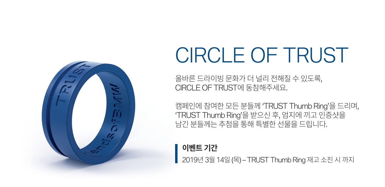 3월 중순 BMW홈페이지를 뒤지다가 알게된 Circle of Trust 이벤트. 사진 상으로는 때깔이 우수한 아노다이징 처리된 링인줄 알고 '오옷'하면서 신청 - 전좌석 좌석벨트를 실천하겠습니다 다짐은 덤.