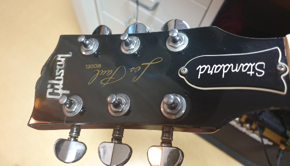 헤드상태, 다행히 예전에 보았던 것 이상으로 로고부위 크랙이 더 진행되지는 않았네. 이것도 그냥 그러려니 하고 쓰는걸로. 다른 깁슨 사진들을 보니 웬만히 나이가 먹은 것들은 병적으로 관리하거나 재도장하지 않은 하에야 대체로 저 부위가 갈라지는 듯 함.