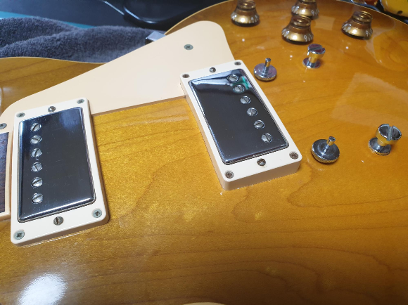 바디는 00년식 내쉬빌 사양으로 그 흔한 예쁜 무늬의 메이플 탑이 올라가 있지도 않고 픽업도(아마도) 기본의 490/498세트겠지만, 브릿지는 내쉬빌 사양이 아닌 ABR-1, 테일피스는 경량의 고또 제품으로 변경되어 있음. 음알못이라 그저 이 브릿지면 좀 더 구수한 소리가 나겠구나 싶은 정도. 다만 브릿지 구조가 현행 사양보다 조금 복잡해서 관리하기는 좀 더 까다로운 것 같음. 청소라든지 청소라든지...그래도 알게 모르게 이 기타, 세월을 20년이나 맞았네.