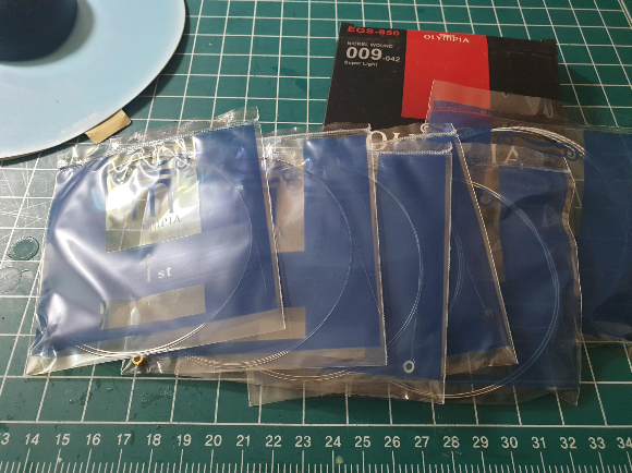 전 회에 예고 한 대로, 메트로놈 사면서 예비용 저렴이로 구매한 올림피아 스트링을 레스폴에 달아주었다. 마음은 010게이지 이상이지만 손가락에 힘이 없어 009 게이지로 세팅.