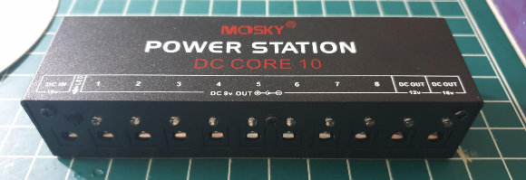 더불어서 지금까지 구입한 페달들을 모두 하나의 전원으로 관리할 수 있도록 power supply를 하나 구매. 물릴 페달 개수가 네 개뿐이니 굳이 고용량의 것을 살 이유도 없어 가성비로 접근, MOSKY Power Station이라는 것을 구했다. Zoom 공간계 이펙터를 제외하고는 대부분 페달들이 100mA 이하로 사용 가능하니, 특별히 이 이상 고전류의 제품을 구매하지 않는다면 전류가 모자라는 일은 없을 것 같다. 다만 전압의 안정성은 어떠한지 두고 볼 일.