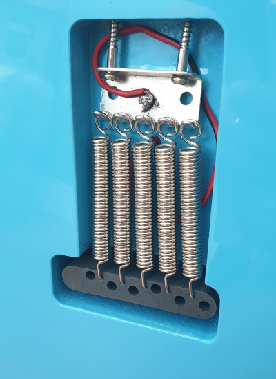 뒷면 브릿지 고정 스프링과 claw. 보시는 대로 납땜이 조금 불안정하게 붙어있고...암질이 싫어서 스프링 다섯개로 강하게 지탱. 그 전에 브릿지쪽 나사를 깊게 박아놔서 움직일 리가 없을 것 같다. Claw고정하는 나사도 자세가 안좋다보니 약간 뒤틀려서 장착이 되었는데...지장 없으니 그대로 사용하는 것으로;;;
