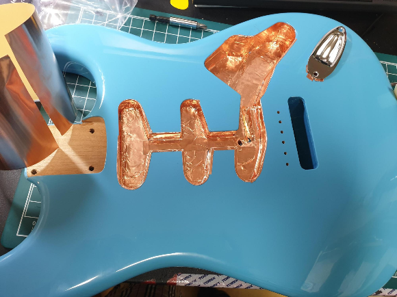 스트랫 자체 잡음을 스트랫의 고유 성질이라고 선호하는 사람도 있으나...나는 잡음마저 사랑할 정도의 극렬 펜더 팬이 아닌 관계로 톤 손실이니 뭐니 다 모르겠고 동테입으로 실드처리 실시.