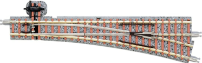 TOMY메이커의 포인트 선로. 옆의 돌출부가 구동부. 현 TOMIX의 포인트 레일. 옆에 돌출된 것은 제거 가능한 더미. 피더는 반드시 본선지점에만 설치합니다(*포인트 선로 앞쪽, 선로에 수직으로 돌출된 회색 라인 참조). 이렇게 하면 포인트가 바뀌는 쪽으로 전류가 흐르도록 할 수 있습니다. 반대로 포인트 안쪽 (본선이 아닌 인입선)에 피더를 붙여 버리면, 피더가 연결되지 않은 포인트 쪽으로 전환할 때는 본선에 전기가 흐르지 않기 때문에 움직이지 않습니다.