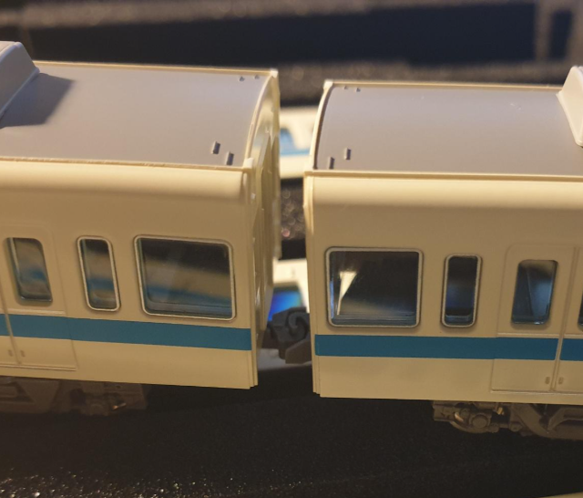 이렇게 결합을 하면 아놀드보다 거리가 짧아 차량간 허전하게 보이는 현상이 확 사라진다. 그래도 비교적 보이지 않는 부분이므로 카토 커플러 정도면 아놀드를 대체하는데 큰 문제가 없음.