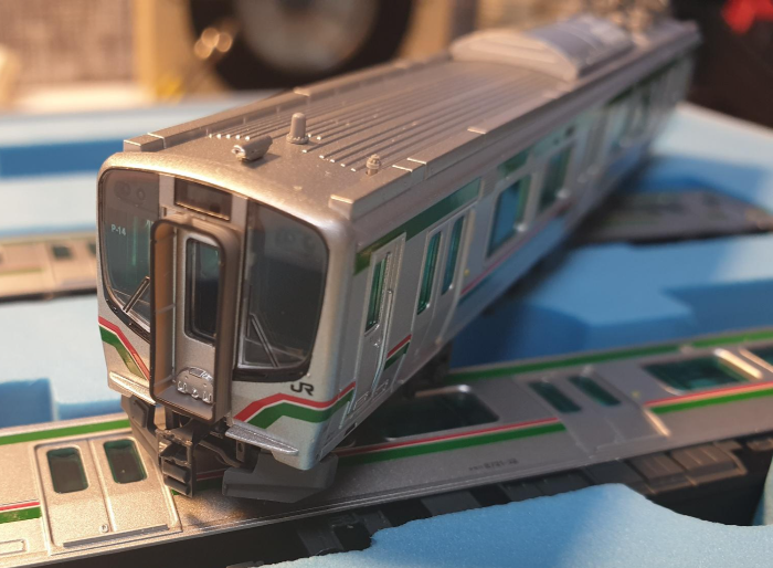 1호차인 쿠모하 E721-14 전면은 확실히 최신 차량이라 도호쿠 3인방 중에서는 단연 독보적이며, 일본 내의 다른 차량과 비교해 봐도 제법 세련된 형상을 가지고 있다. 역시 말단의 커플러는 더미인데, 증결 계획이 없으므로 그대로 둔다.