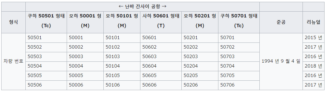 참조로 아래 표는 난카이가 보유한 라피트의 전 편성이다.