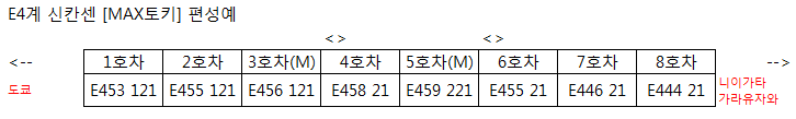 출처: 위키피디아 약간 흐름과 논외이기는 하지만 동일본 차량을 몇 가지 더 살펴본다. 이번에는 신칸센 차량 중 좀 독특하고 못생긴 것으로 따지면 수위에 드는 더블데커의 E4계 신칸센 차량이다.