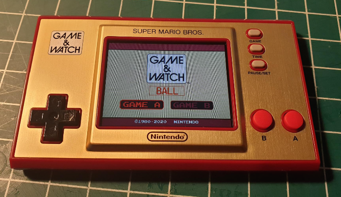 게임은 슈퍼마리오 1,2, 그리고 과거 Game&Watch 게임 중 하나인 Ball 이 들어있다. 그럭저럭 액정 게임기의 이미지가 약간 들뜬 그 느낌을 잘 구현해 주고 있다. 두 개의 공을 저글링하면서 점점 빨라지는 속도에 맞추어 안 떨어뜨리고 잘 받는 것이 관건.
