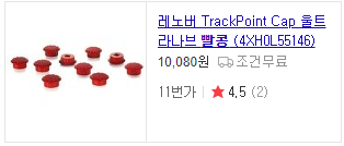 C9) 왜 여분의 빨콩을 제공 해 주지 않는겐가. 참조로 오픈마켓에서 10개들이가 아래 가격임 - 품번 확인 및 기록차 캡쳐. 옛날과 다르게 돔 형태는 한 가지밖에 없는 듯 ㅠㅠ IBM 초기형이 좋은데...