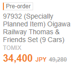 품번 <97932> 특별기획품 오이가와 철도 기관차 토마스호 세트 (기관차 2, 객차 7량) = 49,280 JPY