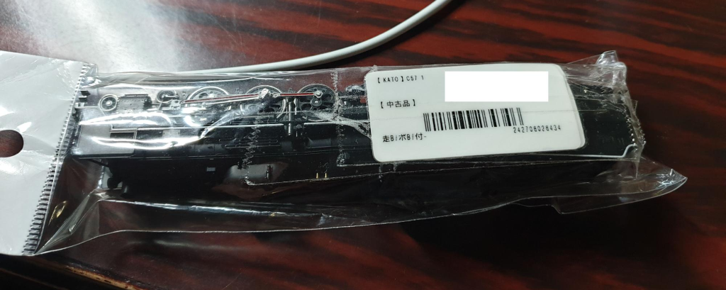 사 왔을 때의 제품 상태. 단품의 경우 보통 케이스 없이 이런식으로 팝니다. 주행 B, 바디컨디션 B, 付(부)는 뭔지 모르겠음. 일정을 종료하고 귀국 후, 집에서 이 녀석의 컨디션을 자세히 확인할 목적으로 분해 후 모터와 기어, 그리고 차축 등의 상태를 확인하니 딱히 나쁘지 않았다. 그렇다면 전 주인이 차륜을 제대로 청소하지 않아 집전불량으로 구동문제가 발생했을 가능성이 높으므로(모형이 오래돼서 관리를 소홀히 했을 가능성 포함), 시간을 들여 천천히 차륜을 닦아 준 뒤에 돌려보니 잘 돌아감. 다만 처음 출발할 때 힘들어하는 것이나, 주행 중 소음이 좀 큰 편인 데 기어 윤활유 같은 것 (카토 오일이라 하는 그것)을 구해다 몇 방울 찍어주면 신나게 잘 돌아갈 것 같다. 물론 요즘 것과 같은 정나미 없을 정도의 정교한 저속 운전을 기대하는 것은 무리일 듯.