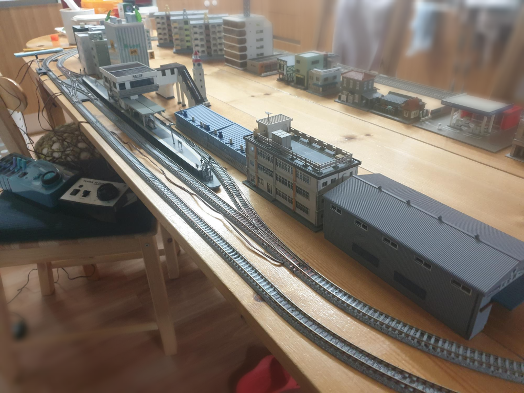 물론 건물 없이 광활한 테이블에 레이아웃을 최대한 단순화 해 놓고, 여기를 한없이 회전하는 철도모형의 주행을 멍하니 바라보고만 있는 것도 재미있다. 느긋하고 조심조심 설치-운전-해체를 진행하면 인내심이 생기고 마음도 차분해지는 듯 함. 언젠가는 시간적, 공간적, 정신적 여유가 좀 더 생겨서 입체교차도 시도해서 보여드릴 수 있는 날이 왔으면 좋겠음.