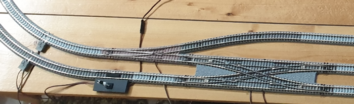 위 레이아웃은 컨트롤러 및 전동 포인트 선로에 있는 TCS 커넥터 전선 연결의 편의와 안정성 - 선 길이가 짧은 것도 있지만 선이 트랙의 밑에 많이 깔리면 트랙이 들추어 올려져 안정적으로 수평을 이루지 못하므로 - 을 위해 내측 대피선 스위치 선로 바로 안쪽에 크로스포인트를 설치했으나, 연장선을 가지고 있거나 커넥터 선의 길이가 여유 있다면 되도록 포인트 선로를 저런 식으로 한 군데에 모아 설치하는 것을 절대 추천하지 않는다. 포인트 선로는 레이아웃의 확장과 차량 주행의 다이내믹함을 부여해주는 요소이긴 하지만 선로 변경이라는 목적을 위해 그 구조가 복잡하므로, 때때로, 아니 생각보다 꽤 자주 차량 탈선의 일등 공신이 되기도 한다. 이러한 탈선요소를 한 군데에 집중적으로 설치 해 놓으면, 정확히 어느 포인트에서 탈선이 많이 일어나는지 곧바로 확인하기가 무척 까다로와진다. 심지어 포인트 A의 나비효과로 포인트 B에서 탈선이 일어나는 경우가 발생하기도. 가능하면 내측 대피 포인트 선로 건너편 건널목이 보이는 정도의 장소에 크로스포인트를 설치함으로써 한 군데에서 집중적인 탈선하는 리스크를 분산시키는 것이 좋다.