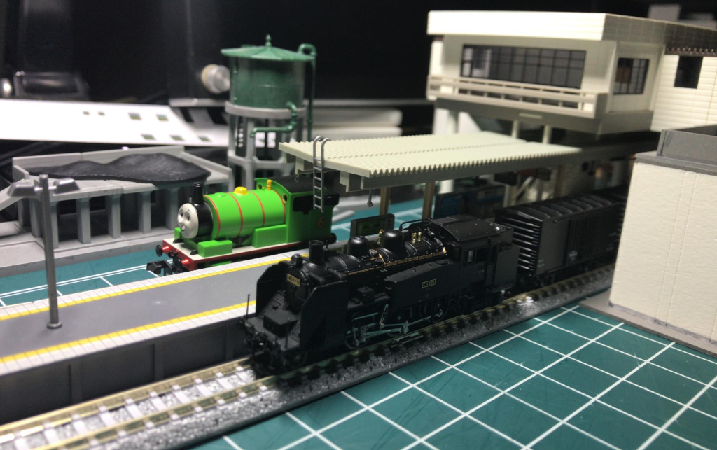 전체적으로 건물의 이음매 같은 것이 매끄럽지 않지만, 1:150 스케일의 장점이라 할 수 있는 '그까이꺼 대충 뭉개도 표시 안나'를 극대화하여 이정도로 끝냈다. 실제 여러 건물들 사이에 끼워 넣으면 진짜로 이런 단점들은 눈에 띄이지도 않는다. 그리고 건물이 주가 아니라 철도 레일과 철도 모형이 주체이니까.