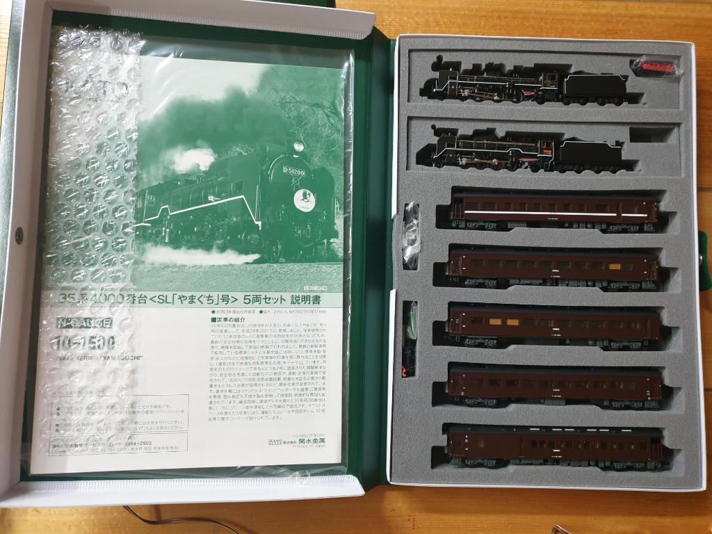 다채롭게 경험 해 보았던 EMU 등과 달리, 객차쪽은 사실 지금의 일본철도에서는 경험하기 그리 쉬운 차량은 아니다. 우리나라도 무궁화호를 제외하면 이제 EMU로 운용방식이 변하는 단계이므로, 앞으로 기관차가 끄는 객차를 타기 쉽지 않을 수도 있겠다. 어쨌든 오늘 소개하고자 하는 철도모형은 아직도 증기기관차를 달고 심지어는 이를 위해 최근에 객차가 새로 만들어진, 35계 4000번대 5량 객차 SL야마구치 세트이다.