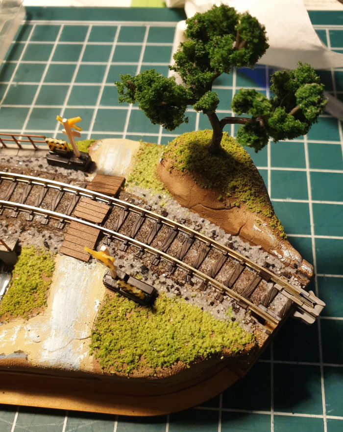 건널목에 설치한 발판 역시, 급격한 커브선이었음을 알고 있었다면 저렇게 비뚤게 붙여야 길이 연결되도록 하지는 않았을 것이다. 아니면 종이로 된 저 발판을 길 방향에 맞게 재단하여 자르면 되었었는데, 마음이 급해서 제대로 만들지 못했음이 좀 아쉽다.