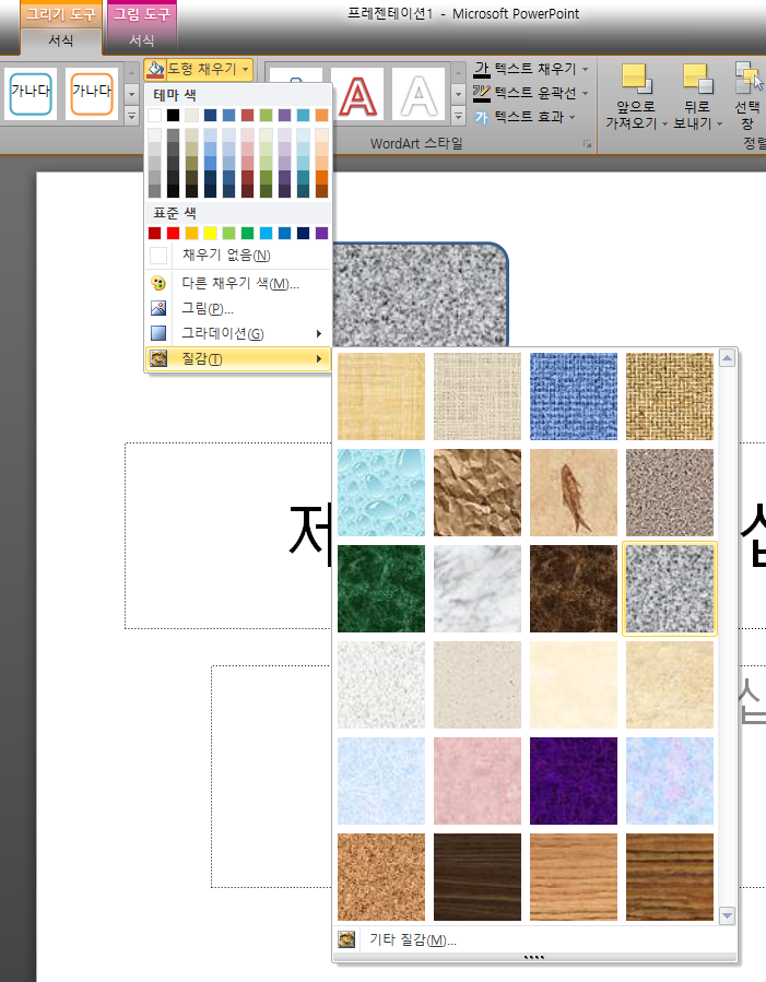 서식>도형채우기>질감>대략 3.4 지점의 패턴.