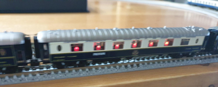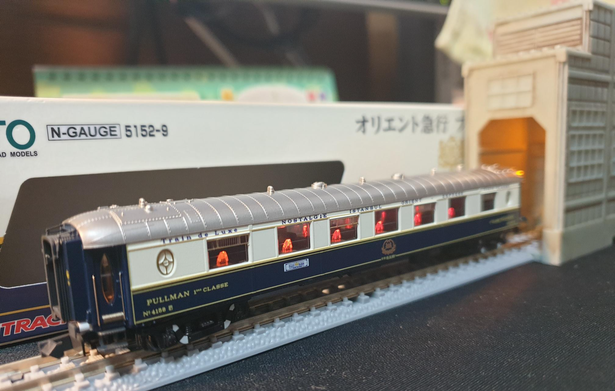 용인 삼성화재 자동차 박물관에 가면 한 켠에 두 가지 철도차량의 풀편성 모형이 있는데, 하나는 미국에서 운용되었던 은색의 제퍼 차량, 그리고 다른 하나가 이 오리엔트 익스프레스 철도 모형이다. 물론 거기에 있는 모형은 HO게이지. 이것은 N게이지 모형.