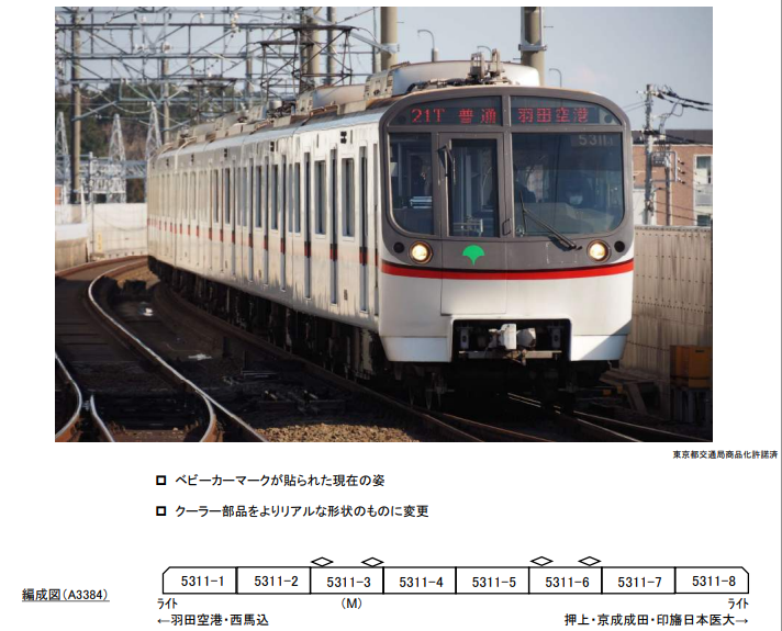 이번 소개할 차량은 최근 재판된 마이크로에이스제 도에이 아사쿠사선 5300형 8량 세트이다. 일전 케이큐 차량 소개때 언급 해 드렸듯, 케이큐/도에이/케이세이 3사 직결운전 운용되고 있으며 이 중 도에이(도쿄도영) 아사쿠사선에서 사용되는 차량이다. 일전 소개해 드린 바 있는 유튜버 '철도타로'씨의 메인 캐릭터로써도 활약하고 있는 차량.