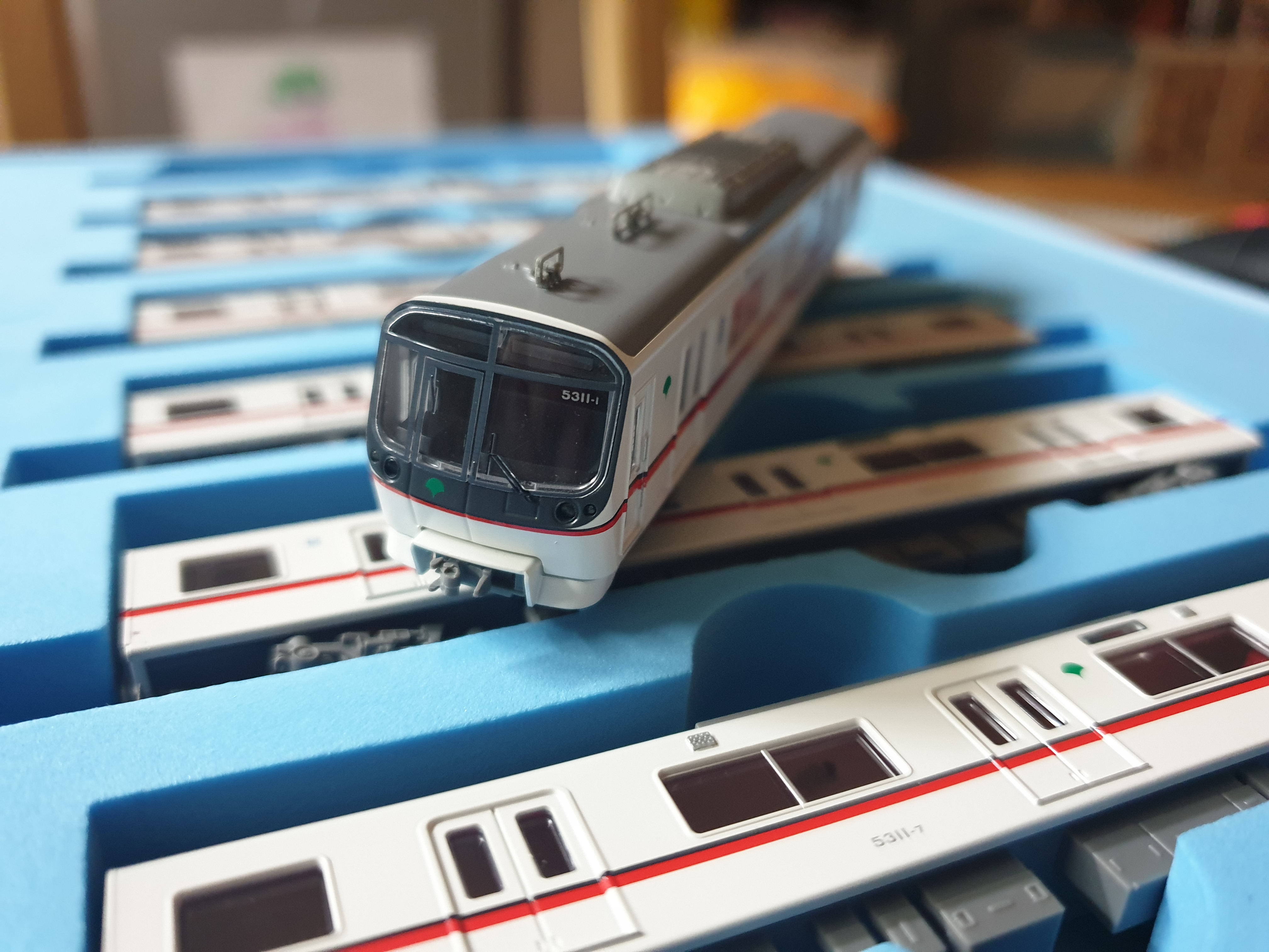 전체 편성의 확대샷. 보시다시피 차량의 측면이 상당히 단순하고 네모네모하다. 실제 차량을 보면 그 단순함과 무식함이 피부로 확 와닿는다. 그것이 이 5300형의 매력이라고 하면 매력. 시끄럽게 출발하는 것은 덤.