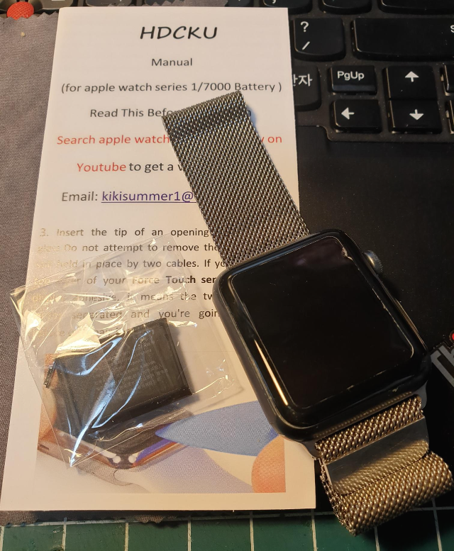 애플워치 배터리 교체 - 2번째, 실패기 포함.Macintosh 2021. 3. 18. 23:58일전에 자가교체한 애플와치 배터리가 또 뚜따됐다는 소식을 포스팅 한 적이 있다. yoonoca.tistory.com/228?category=266495 Apple 제품 배터리 유감 - 애플와치 2015년 경 구입한 A1554 애플와치 42mm 1세대 (Series 1 아님. 완전 초기모델)의 두번째 뚜따 발생. 당시 블로그에 따로 포스팅 하지 않았으나 (아마도)2017년 경 배터리 부풀음으로 첫 번째 뚜따가 발생 yoonoca.tistory.com 전화가 울려도 잘 모르고 안받는 경우가 많아 애플와치를 차고 다니는 경우가 많고, 업무 목적으로 메일이나 메신저를 실시간으로 확인 할 필요도 많기에 뚜따이후 사용하지 않던 애플워치를 한 번 더 살려보고자 두 번째로 배터리를 주문.  뭔가 적응안되는 컬러의 미제 소포가 오랜 시간을 기다린 이후 도착. 요즘같은때는 코로나라도 묻어오지 않을까 노심초사이다.  배터리가 그럴듯한 상자에 포장되어 있다. 근데 뭔가 미국스러운 느낌 보다는 아시안스러운 느낌이 나는구나.  뭐 항상 그렇듯이 마데것. 옆나라에서 만든것이 태평양을 건너 갔다가 다시 그 옆나라로 도착하였다. 위아더 월드.  다만 3년 전 배터리를 교체했을 때와 다르게 구성품이 제법 본격적이다. 처음 배터리 갈았을 때와는 거의 유사한 구성이지만 포장 상태라던가 작업 설명서를 동봉해준다던가 하는 것은 발전된 방향.  오늘 교체의 주인공. 애플워치 초기형 (시리즈 1이라고 하는 것도 아닌, 2014년도에 출시된 바로 그것)에 밀레니즈루프를 별도로 구입했었다. 2015년 구매 이후 잘 썼다. 다만 앞서 블로그에 이야기 했듯, 시계인데 이렇게 배터리 교체를 불편하게 만들어 놓으면 곤란한 것 아닌가 싶다. 디지털 디바이스이기 이전에 시계이므로, 기능이 다소 저하되더라도 좀 더 길게 사용하고 싶은 것이 사람 마음일텐데 - 나만 그런가?  뚜따됐던 녀석을 3M DCT (Dual Coated Tape)를 붙여 고정해 둔 상태였다. 그래서 원래 실링되어있던 테이프 위에 임시로 붙여두어 상당히 더러운 상태. 배터리는 한창 부풀어올랐다가 당분간 충전하지 않도 두었더니 파우치의 숨이 죽어 있었다. 어쨌든 안정적으로 사용하려면 배터리를 교체하지 않으면 안되니 교체 실행.  앞유리와 본체를 고정하는 테이프를 제거하고, 옆의 커넥터 두 개를 커버를 빼내고 들어내면 이렇게 두 개가 분리된다. 본체 테두리 연질 플라스틱은 (아마도) 포스터치를 지원하기 위한 기구이자 실링 역할을 하는 것으로, 그 양쪽으로 DCT가 샌드위치처럼 붙어있다. 본체쪽도 수명이 거의 다 된듯하여 떼어낸다.  이렇게 DCT를 기구로부터 제거한다. 찐이 많이 남으므로 긁어서 제거해주는데...이 때 주변의 커넥터가 일부 데미지를 먹은 듯. 나중에 최종 조립 이후 일부분이 터치가 되지 않는 현상이 발생, 그냥 시계가 되었다 ㅠㅠ  본체쪽도 부풀어오른 배터리를 제거. 보시다시피 상단 탭틱엔진, 배터리 후반에 S1칩이 내장되어 있고 배터리가 차지하는 영역이 1/3정도 된다고 보면 되겠다.  플라스틱 실링을 새로운 실링테입을 이용해서 부착. 보통 3M 300 LSE를 많이 사용하던데 200 뭐시기인가로 다이컷 되어 있음. 교호로 사용하는 그레이드인지는 모르겠음.  이제 배터리 교체의 가장 어려운 순간. 액정 커넥터를 본체에 붙이고 테입을 붙이는 과정. 미리 붙여놓고 커넥터를 연결해도 좋지만...생각보다 간섭이 많이 난다. 어쨌든 10분 정도 씨름하여 정상적으로 붙이는데 성공.  조립완료. 자세히 보면 알겠지만 왼쪽 아래, 오른쪽 아래에 은색 같은 긁힘이 보인다. 바로 뒤에서 테이프 찐을 제거하다가 긁어먹은 자국인데. 여기서 아래를 통과하는 액정의 커넥터를 핀셋으로 긁어먹은 듯. 대수롭지않게 생각하고 전원 올리고 암호를 입력하는데 오른쪽 아래 1/4 지점이 터치가 안됨. 번호 입력이 안되니 암호 입력도 안되고 여러번 잘못되니 당연히 리셋. 법인폰과 연결해서 쓰는 특성상 암호는 필수이기에 단순 알리미로 사용하는 것도 불가능. 고육지책으로 사용하지 않던 아이폰 7을 꺼내서 암호 설정하지않고 세팅후 그냥 시계로 사용하는 방법밖에 없게 되었다. 혹시나 사용하던 애플워치의 배터리 교체를 고려하시는 분이면 액정 뒷면 태이프 잔사 제거 시 주변 커넥터를 건드리지 않도록 충분히 주의하여 작업할 것. 자가교체 하실 분들께 제가 드릴 수 있는 당부이다. 중고로 액정을 구입하여 어떻게든 정상상태로 돌려 놓을지, 대안을 마련할지는 차차 검토. 배터리는 더할나위없이 컨디션이 회복 되었건만... (2022.05.27) 결국 액정 사서 교체 해 줌. 아래 포스팅 참조... 애플워치 액정교체 및 재기동 - 죽...여...줘.... 의도한 바 없으나 이 블로그의 매일 조회수 1등인 포스팅을 관리자 모드에서 찾아보면, 항상 아래의 애플워치 배터리 교체 및 실패기가 발견된다. 나만 그렇게 느끼는 것이 아니라, 애플 제품 yoonoca.tistory.com 'Macintosh' 카테고리의 다른 글애플워치 액정교체 및 재기동 - 죽...여...줘.... (9) 2022.05.26 결국 돌고 돌면 정품 - 에어팟 프로. (4) 2020.11.12 Apple 제품 배터리 유감 - 애플와치 (0) 2020.09.14 아이폰 6 배터리 교체. (2) 2017.08.26 요즘 Mac은 좀 빠른가요?? (2) 2017.08.07