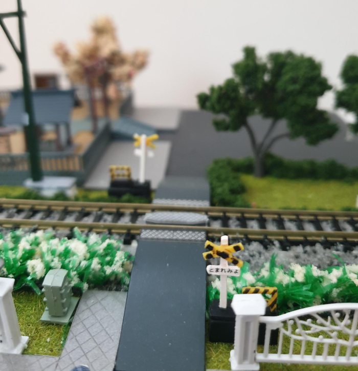 철도 선로로 단절되는 공간을 연결 해 주기에 건널목만큼 좋은 것도 없는 듯. 사실 토미테크의 건널목 세트도 구비해 놓았으나, 단선 철로에서는 그다지 유용한 이동루트는 아닌 듯 하여 이번 제작에는 사용하지 않았음.