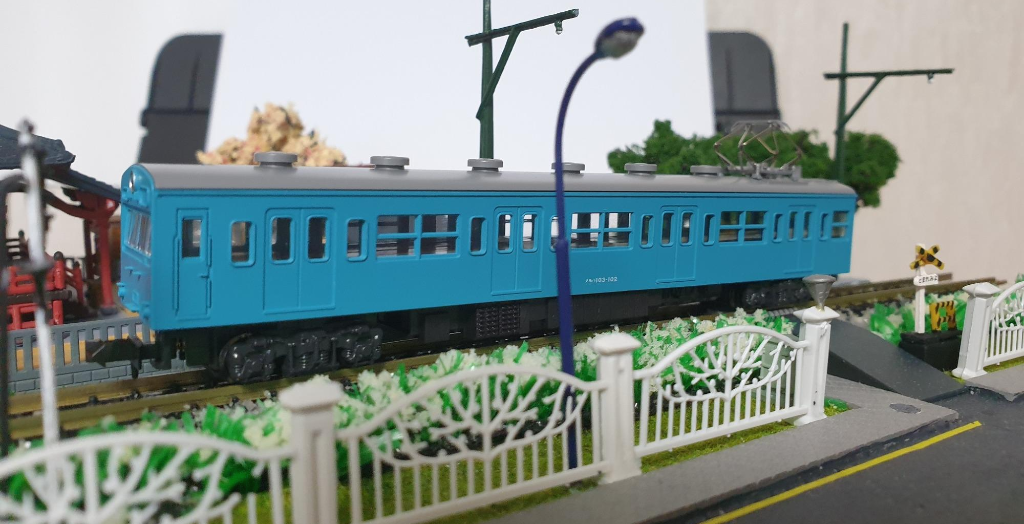 N게이지 모델로써는 토믹스의 HG같이 초정밀한 구성으로 된 녀석도 있고, 완성품과 반조립품, 조립품까지 왠만한 일본 철도모형 (최소 2선급) 회사에서는 103계 모형을 보유하고 있지 않은 곳이 없을 정도이다. 그 중 현재 시점으로 퀄리티가 가장 단순한 KATO 고쿠덴 3량 세트 그 1번 '블루' 제품을 소개하고자 한다.