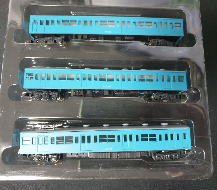 박스에서 제품을 꺼내면 통상의 스티로폼 패키지도 아니고 PETG 재질의 블라스터 패키지이다. 차량은 위로부터 쿠하 103 (팬타그래프 없는 선두차), 모하 102 (원래 모터차이나 이 모델에서는 그냥 T카), 쿠모하 103 (팬타 있는 선두차, 이 차량에 모터 장착됨). 그냥 이렇게 봐서는 이 차량의 진면목을 모른다.