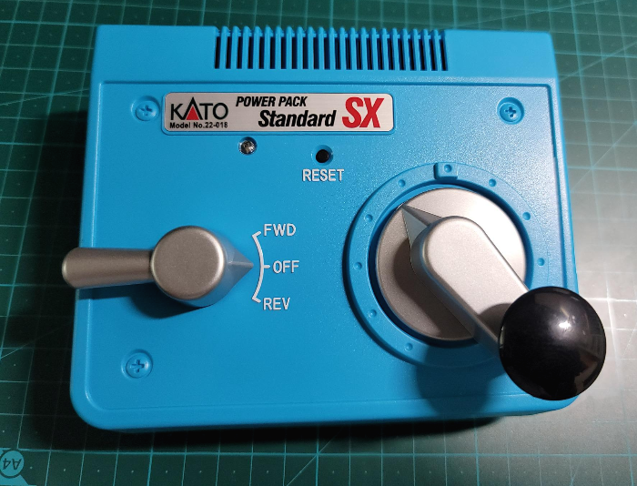 출처: 카토 공홈 정격출력 2A의, 카토의 플래그십 컨트롤러이다. 과거 KC-1 시절에는 본체 좌측에 본체만한 파워어댑터가 함께 들어갔었다(KM-1, 아래 자료사진 참조). DX 전작인 Hyper D 부터는 본체 하나와 어댑터로도 충분히 사용 가능하게 됨. Main/Sub의 두 개 피더 채널을 가지고 있으며 HO게이지 차량 운전에도 여유있게 대응 가능할 정도로 고출력 제품이라고 보면 되겠다. 당연히 PWN, 상점등 모두 지원한다. 오른쪽 상단의 노브를 통해 상점등 지점을 lock하는 것이 가능.