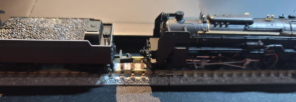 C62 2 & 3. 한 쪽은 아놀드, 한 쪽은 더미 커플러. 이렇게 해서는 중련이 안된다. 직찍. - 동력차 사이 커플러의 길이도 고려해야 함. 특히 기관차의 경우, 선두의 모양을 사실감 있게 하고자 더미 혹은 실사와 비슷한 모양의 고기능 커플러를 짧게 만든 것들이 있다. 예상하시다 시피 커플러가 짧으면 곡선 반경이 좁은 구간에서 상대 차량과 간섭을 일으켜 탈선할 가능성이 크므로, 운전하는 선로의 곡선반경을 잘 파악해서 필요한 경우 운전 환경에 맞도록 적당한 길이의 커플러로 교체해야 한다.