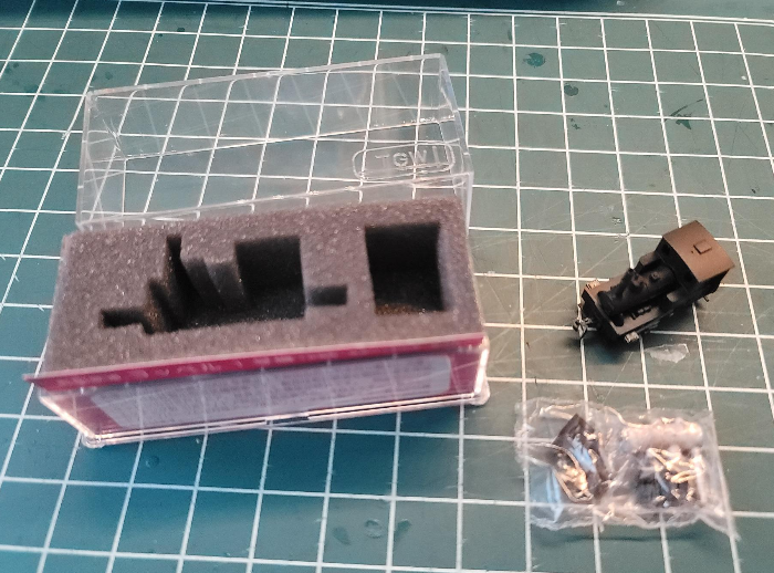 약간 질감있는 흑색 무광 도장이 되어있어 겉에서 보면 마치 메탈제 차량같지만, 앞서 이야기 했듯이 all 플라스틱 차량이다. 물론 부속된 에칭파트와 화이트 메탈 보일러를 바꿔주면 부분 메탈차량으로 변신한다. 그러나 당분간은 커플러 외에 아무것도 안 달아주기로 했음. 사실 설명서만으로는 어떻게 장착해야 하는지 모르겠고 좀 겁이나서...데칼이나 인레타가 없는 것이 그나마 다행이라고나 할까.