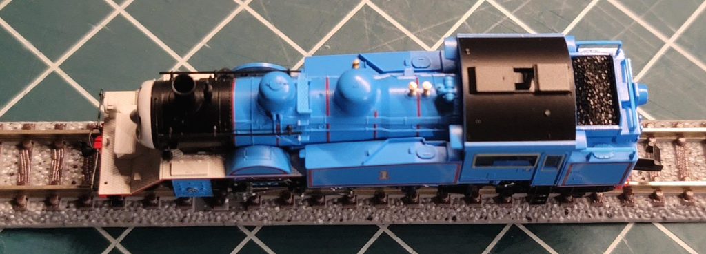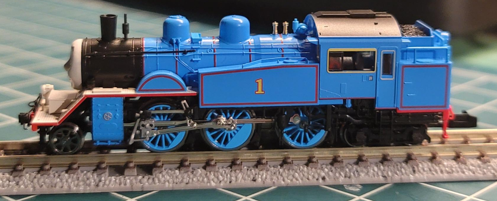전면. 실제 사진에서 보는 오이가와 철도 토마스호의 얼굴과는 약간 다른 느낌인데 3D판 애니메이션 토마스의 얼굴과 조금 더 유사해 보이고, 실제 차량보다 표정이 풍부하다. 눈동자가 왔다리갔다리 하는 기믹이 있으면 좋았겠지만 1/150 차량에 무얼 바라랴.