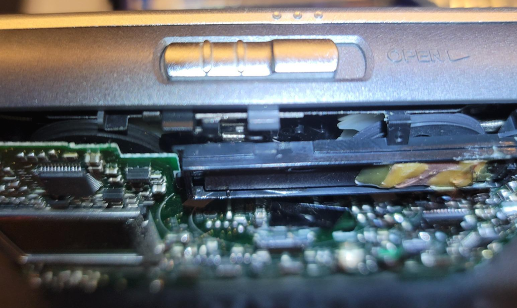 그 다음, 벨트를 사서 갈기만 하면 이 포스팅은 해피엔딩일텐데, 그냥 지나갈 리가 없지. 아이와 제품의 복병이 하나 숨어있다. 구조를 컴팩트하게 만들고 비용 절감을 위해, 기판과 드라이빙부를 터미널 단자 등으로 처리하지 않고 그냥 납땜으로 조져서 붙여놓은 것 - 그림의 화살표 부분. 여기를 납으로 지져서 떼어내지 않으면 기판을 들어낼 수 없다. 그 외에 좌상단 이미드 필름으로 된 플렉서블 단자쪽도 떼어내는 것이 정신건강에 좋다고 하는데, 납땜은 어릴 때 부터 젬병이라 여기서 그만두고 전문가를 찾는게 좋겠다 생각을 하게된다.