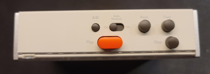 모든 동작 버튼들은 기계식이다. 대체로 간결하게 잘 만든 것 같은데, 역시 다른 사람들도 지적한 바와 같이 리와인드(RWD)-패스트 포워드(FF) 버튼의 표기가 문제가 된다. 보통 전자식 버튼, 혹은 일방향 재생만 가능한 플레이어면 모르겠으나, 기계식 버튼의 오토리버스 플레이어에 저렇게 과감하게 저 단어들을 사용하다니. 저럴 때는 그냥 심플하게