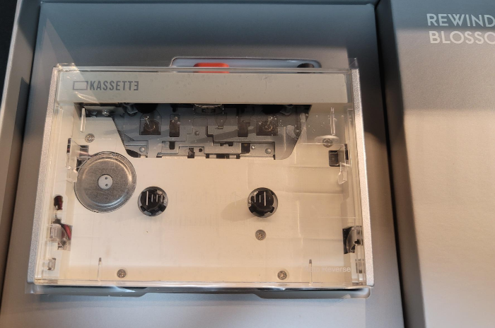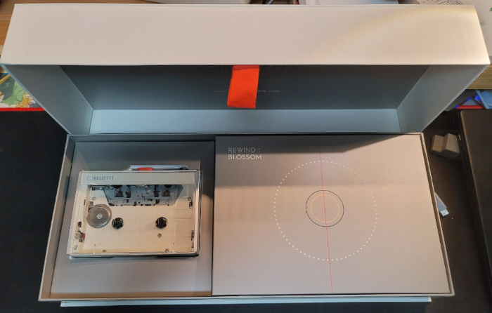 일단 겉 박스에는 'Cassette' 가 아닌 'KASSETTE' 라고만 써져있긴 하지만, 본래 제품명은 '블루투스카세트플레이어 KST-106RB'라고 하고 KT, CJ 엔터, 지니, 인켈 네 개 회사가 작당하고 만든 '리와인드: 블라썸'이라는,