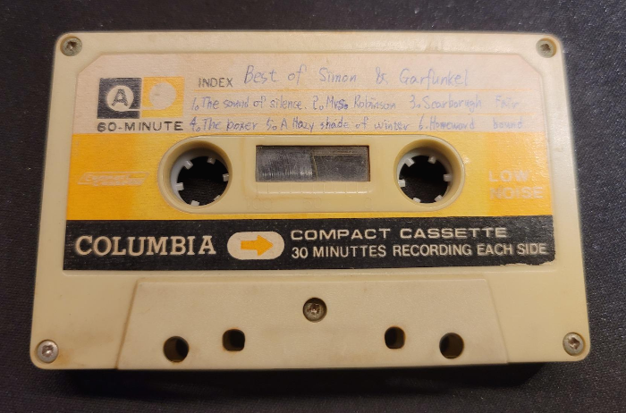 사이먼 & 가펑클 베스트 앨범 더빙. 원본은 친누이가 소유. 와꾸가 이정도는 되야 레트로지. 빈티지인가? 테이프 하우징만 봐도 그리 좋은 품질의 테이프는 아니겠구나 싶다. 게다가 공테입 아닌 정식으로 음반사를 통해 출시한 정품 테입이면 적어도 본 테입 나오기 전 버퍼영역의 투명테이프에는 음반사의 워터마크 정도는 새겨서 나와야 하는 것 아닌가? 아래와 같이.