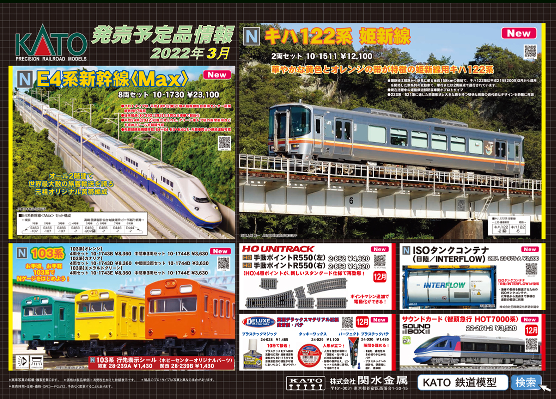 오늘 카토 공홈에 올라온 2022년 3월, 그리고 봄 출시 예정인 신상품에 대해 소개한다. 일단 간단히 소개하고, 11월 2주차 일요일 '카토 호비센 페스티발' 동영상이 올라오는대로 좀 더 자세한 소식을 확인하여 내용을 추가하겠다.