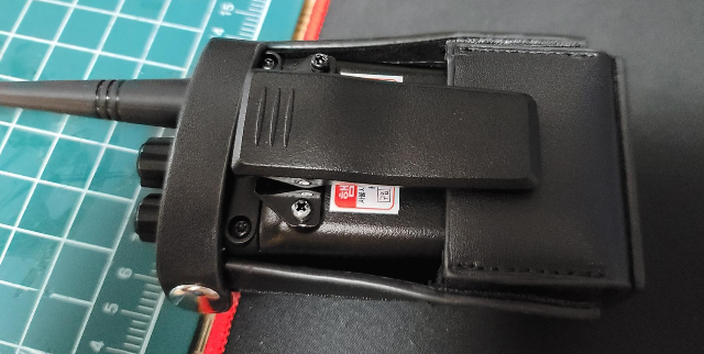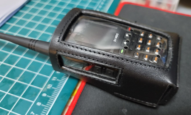 배터리 대책으로 만들어 둔 고무밴드가 좌우로 벌어져서 외관상 그리 깔끔해 보이지 않는다. 계속 저 상태일지 시간이 지나면 차분하게 모양이 잡힐지 기다려 보면 될 일. 저 부분만 없으면 꽤 만족스러울텐데. 참고로 가죽케이스 자체 두께가 있다보니, 그립감은 상대적으로 손이 작은 분들은 조금 떨어질 수 있다. 그래도 무전기 보호를 우선으로 한다면 꽤 괜찮은 선택이 아닐까 싶다. 가격은 24딸라. 개인적으로는 만족, 그리고 추천.