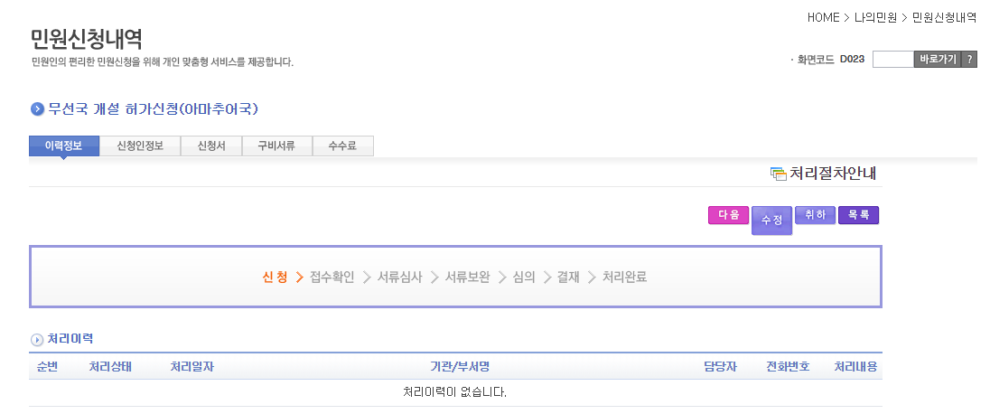 2월 말 자격증 오자마자 무선국 개설 민원을 신청했는데 아직까지 신청단계. 아직 담당자가 서류조차 쳐다보지 않았다는(못했다는?) 이야기. 게다가 기존 신청건을 취소하지 않으면 업데이트 할 수 없는 건이 있어, 기존 건을 취소하고 다시 신청하는 바람에 순번이 다시금 밀리게 되었다.