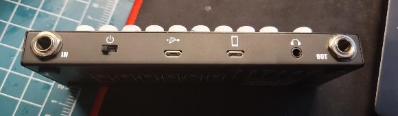 이 가격의 이펙터 답지 않게 뒷쪽에 다양한 단자가 마련되어 있다. 왼쪽 기타잭, 메인 전원버튼, 어댑터/PC 잭, 핸드폰 데이터 케이블, 헤드폰 잭, 앰프 잭이다. PC로 부터 IR을 받을 수 있고, 핸드폰에 연결해서 녹음을 하거나 핸드폰에 있는 음원을 재생하여 합주 연습을 할 수도 있다. 뒷쪽에 모든 단자가 다 마련되어 있어서 인터페이스의 접근성과 선정리 같은 것은 그리 어렵지 않겠다.