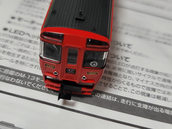 차량과 차량 사이는 토믹스의 보통 제품이 그러하듯, 아놀드 커플러로 연결된다. 다른 차량보다 아놀드 커플러가 뻗어나온 길이가 짧아 차간 거리는 그렇게 넓지 않지만, 모형 정밀도 측면에서는 항상 아쉬운 토믹스의 제품 구성 정책. 다른 차량과 증결할 목적이 아니라면 굳이 단일 편성으로 운용되는 차량에 굳이 아놀드를 끼워 팔 이유가 없을 듯 한데...