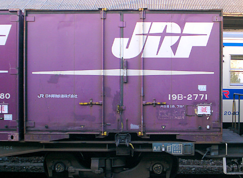 출처: 위키피디아. 그런 까닭인지 일본에 체류하다 보면 화물열차 지나가는 것 보기가 하늘에 별따기이며 간혹 보게되는 화물열차에서 운송되는 컨테이너도 우리가 일반적으로 알고 있는 상자보다 작은 (위 사진) 것을 화차에 얹어 운송하거나, 2대차짜리 차량이 아닌 2차축의 소형 화물차량을 달고 가는 경우도 많았다. 즉, 노반의 축중이 낮아 우리나라를 비롯해서 다른 철도 운용국가의 일반적인 20~25톤 축중 규격의 화물이나 기관차를 운용할 수 없다는 것. 고중량의 화물을 힘있게 견인하려면 결국 1) 기관차의 구동륜을 늘여 힘을 선로로 많이 전달하거나, 2) 중량으로 눌러주어 점착력을 확보하는 두 가지가 핵심인데, 이 중 두 번째의 방법을 활용할 수 없다는 이야기.