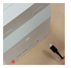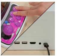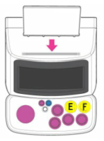 9) SD카드가 잘 삽입되었는지 확인한 뒤에, 본체의 E 버튼과 F 버튼 두개를 동시에 누른 상태로 본체에 전원 케이블을 연결합니다.