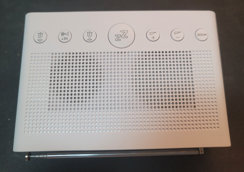 본체 상면에는 여러가지 기능 스위치, 그리고 스테레오로 추정되는 스피커 구멍이 두 곳 뚫려있다(수정: 오른쪽 구멍은 막아보면 음색이나 출력의 변화가 없는 것으로 보아 왼쪽 스피커 하나만 사용하는 모노출력이다. 그럼 저 오른쪽 구멍은 도데체 뭐란 말인가). 중간의 Snooze 스위치는 알람이 울리면 끄는 기능이 아니라 '5분만 더' 이런 기능이고, 정작 알람이 울리면 위의 일곱 버튼 중 스누즈를 제외한 여섯개 중 하나를 누르면 알람이 꺼진다고. 그 외에 시계/스피커/라디오마다 각각의 기능이 달라지니 이를 잘 숙지해야 손쉽게 사용 가능할 듯.