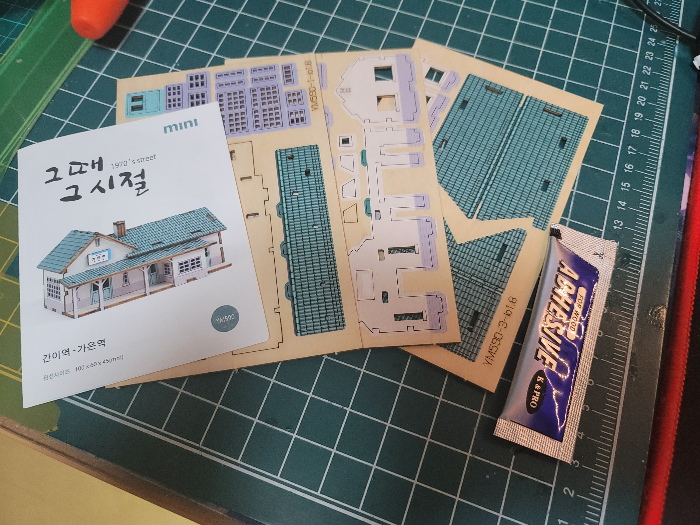 어느 분께 아래의 목제 조립 건물 키트를 하나 받았다. 국산 제품으로 뭐 그런가보다 했는데 잘 보니 스케일이 1:150, 정확히 일본철도 N게이지 모형과 딱 들어맞는 축척이 되겠다. 갑자기 동공이 밝아지며 즉시 조립에 돌입.