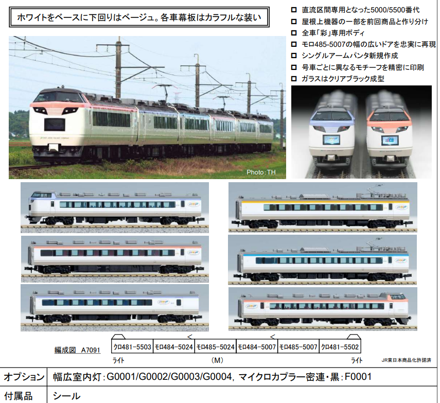 [철도모형] 출시예정 제품 소개 - 마이크로에이스 485계 5000/5500번대 '이로도리' 6량 세트.Train Model 2023. 6. 5. 15:14