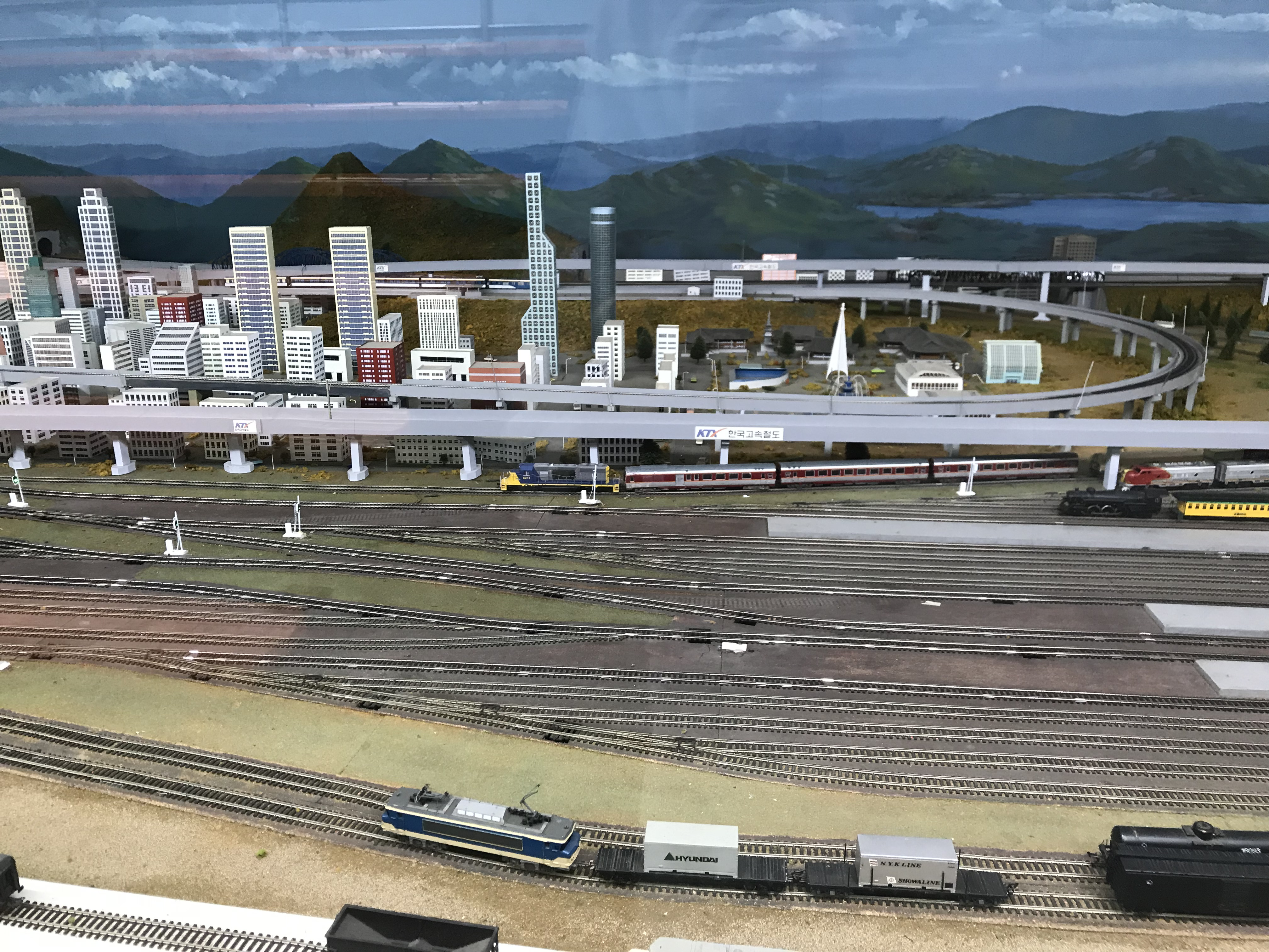 우리나라의 대표 철도차량이 되어버린 KTX, 게다가 국산의 산천모델. 지금도 판매되고 있는지 모르겠으나 Korail 내부에서 벤처 형식으로 HO 모델을 개발하여 KATO HO 게이지 레일과 함께 판매했었던 것으로 기억한다. 그 차량을 그대로 사다가 사용하고 있는 것 같고.
