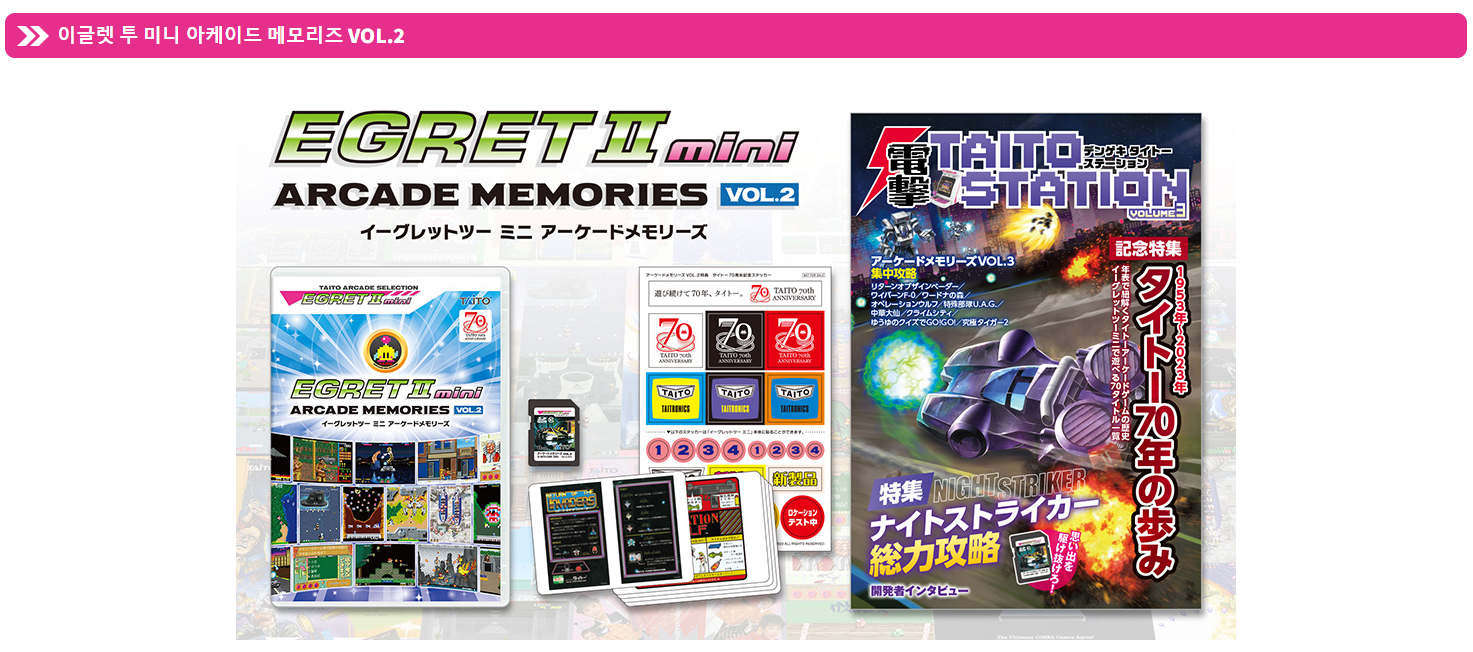 https://www.taito.co.jp/egret2mini/support/update EGRETⅡ mini | 株式会社タイトー 50タイトルまるごと遊ぼう!テーブルに置けるゲームセンター「EGRETⅡ mini」好評発売中!! www.taito.co.jp 앞서 공유했던 이