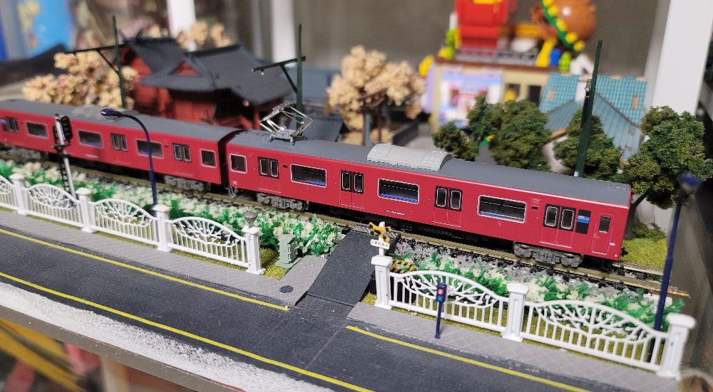 부분적으로 부서져있던 위의 작은 레이아웃을 고쳐주었다. 보관 문제로 일부러 부러뜨려 두었던 가선주를 철사 심을 박아 다시 세워주고, 떨어졌던 벚나무 꽃잎들과 가지들을 정리했다. 그리고 굴러다니던 그린맥스제 반탄선 103계 차량 2량을 놓아봤는데 이 레이아웃에 20M 짜리 차량은 안어울리는 듯.